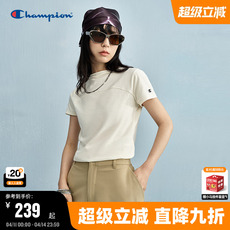 Champion冠军短袖t恤女2026春季新款刺绣纯棉纯色夏季白色正肩t恤