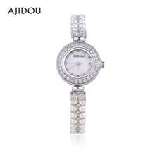 AJIDOU阿吉豆手表女款珍珠银色精致轻奢手饰小众气质女士石英腕表