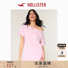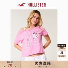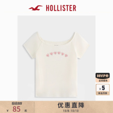 Hollister25夏Y2K甜辣印花棉质斜肩露肩T恤女装357-4078