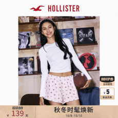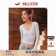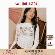 Hollister25秋新款LOGO美式辣妹亨利领印花长袖T恤女装357-5019