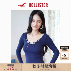 Hollister25秋季新款辣妹系带娃娃衫亨利领长袖T恤女装339-5242
