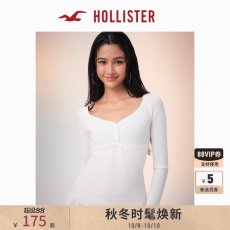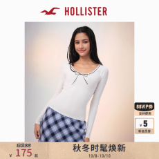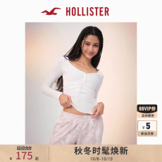 Hollister25秋新款美式Y2K甜辣修身亨利领长袖T恤女装339-5194