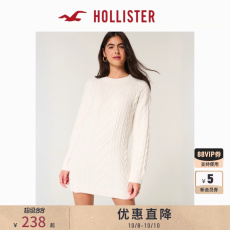Hollister25春ins风垂感绞花针织长袖连衣裙女装359-4342