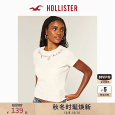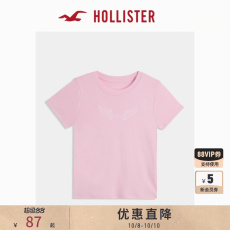 Hollister25秋季新款美式辣妹棉质刺绣正肩短袖T恤女装357-6093