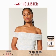 Hollister25夏新款法式性感褶皱一字肩露肩T恤上衣女装339-5191