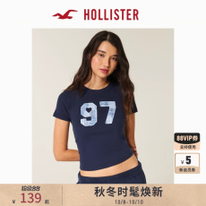 Hollister25夏季新款美式Y2K辣妹棉质正肩短袖T恤女装357-5004