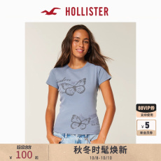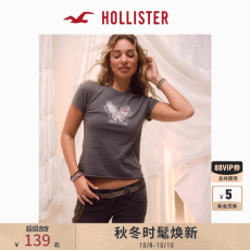 Hollister25秋季新款美式辣妹棉质蝴蝶正肩短袖T恤女装357-6093