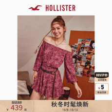 Hollister25秋季新款波嬉风一字肩露肩长袖连衣裙女装359-5279