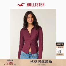 Hollister25秋季新款美式Y2K辣妹修身收腰府绸衬衫女装340-5442