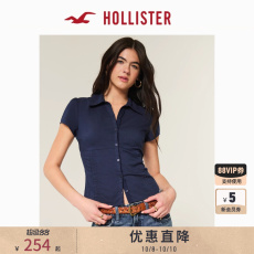 Hollister25秋季款美式Y2K辣妹修身收腰短袖衬衫女装340-5436