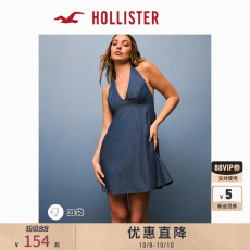 Hollister25夏美式性感垂感挂脖露背连衣裙女装359-5354