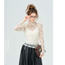 浮光叠影/co&sheng小个子少女风勾花镂空设计打底衫蕾丝女款气质