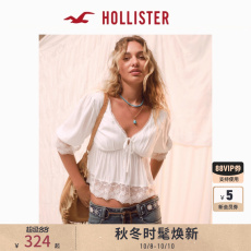 Hollister25秋冬新款美式露背蕾丝装饰系带V领衬衫女装340-5470