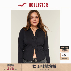 Hollister25秋冬新款Y2K美式辣妹修身府绸系带衬衫女装340-5510