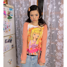 leele Retirement Paradise落叶桔紫古早女孩印花抽绳长袖上衣