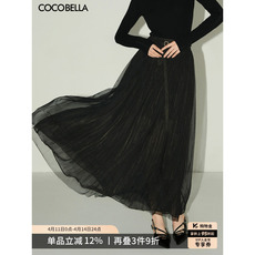 COCOBELLA光泽感重工压褶百褶裙女时尚优雅大摆半身裙长裙HS7070
