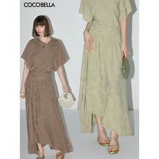 COCOBELLA设计感印花重磅缎面半身裙围裹式腰间绑带长裙HS3112-3
