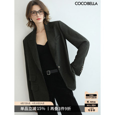 COCOBELLA质感通勤羊毛外套女秋冬时尚毛边OL正肩毛呢西装SI1260