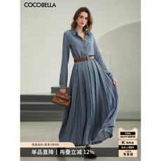 【惊喜价】COCOBELLA莱赛尔肌理褶皱连衣裙气质长袖衬衫裙FR915-4