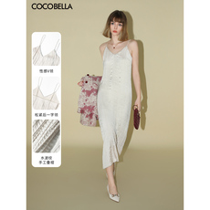 ^@^COCOBELLA[金葱刺绣]轻奢刺绣肌理感连衣裙吊带裙两件套FR966D