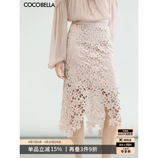 预售COCOBELLA[100%醋酸]钩编蕾丝半身裙女烫金剪花通勤裙HS3150