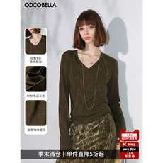 COCOBELLA静奢风细闪亮葱提花V领针织衫女26春通勤长袖上衣TS3022