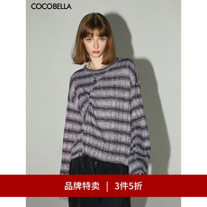 COCOBELLA质感26支双股羊毛条纹毛衣气质卷边针织衫打底衫MZ130B