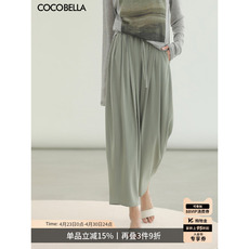COCOBELLA奢感气质通勤肌理缎面休闲裤女春高腰打褶哈伦裤PA3011