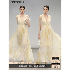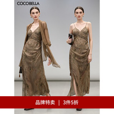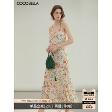 【3件5折】COCOBELLA炒色晕染印花描金压褶吊带裙女连衣裙FR0025