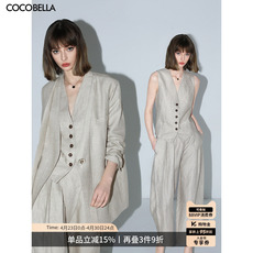 COCOBELLA静奢假两件亚麻西装/马甲/休闲裤/条纹衬衫SI3001-3