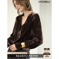 COCOBELLA气质女人味V领丝绒衬衫女早春静奢风通勤长袖衬衣SR0010