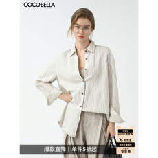 COCOBELLA静奢风蕾丝拼接条纹衬衫女26春通勤立领长袖衬衣SR0015