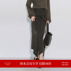 COCOBELLA丝光缎面压褶肌理感半身裙女温柔风垂顺遮胯筒裙HS7026