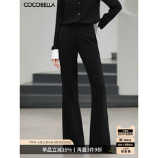 COCOBELLA职场通勤廓形黑色西裤女静奢风珠光人丝烟管裤PA547B-3