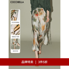 【3件5折】COCOBELLA国风晕染印花半身裙串珠飘带大摆长裙HS7019