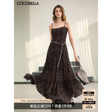 COCOBELLA静奢风丝光质感吊带裙长裙扭结肩带气质连衣裙FR3029-2