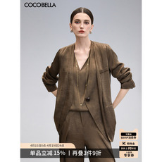 COCOBELLA重工贡针假两件亚麻正肩西装女气质通勤裸领外套SI3001