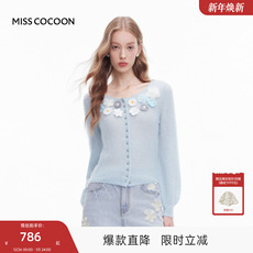 MISSCOCOON可可尼立体钩花针织裙女2025秋冬新款喇叭袖V 领连衣裙