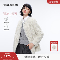 MISSCOCOON狐狸毛绵羊毛皮草轻奢千金风V领保暖外套秋冬款