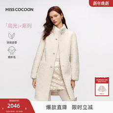 MISSCOCOON皮毛一体全羊毛皮草立领防风袖直筒长外套秋冬新款