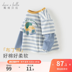 戴维贝拉儿童纯棉T恤男童2026春装新款假两件条纹打底衫男宝A类