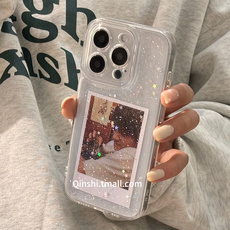 镭射贝壳纹羽纱透明手机壳背卡苹果17/16diy内衬打底贴纸iphone15promax14/13/12羽毛爱心闪粉咕卡背膜材料包