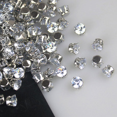 3D手缝钻 带底托锆石 DIY宝石 手缝亮钻 圆形 白色人造宝石婚纱钻