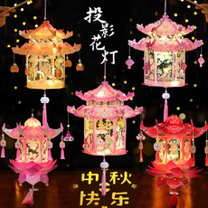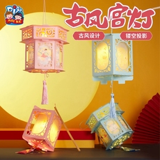 中秋灯笼儿童手提发光投影小灯笼 diy材料包国潮古风宫灯夜市摆摊