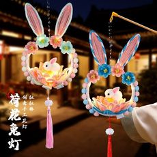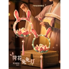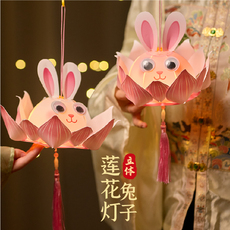 中秋节立体兔子莲花灯笼儿童手工diy礼物古风非遗玉兔荷花灯材料