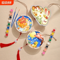 中秋节灯笼2025新款儿童手提手绘油画发光花灯手工制作diy材料包