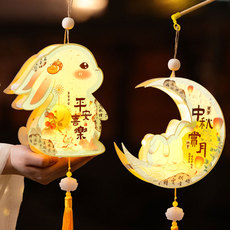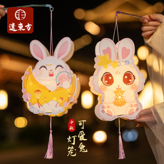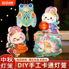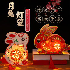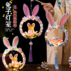 中秋节灯笼手工diy材料幼儿园儿童创意制作手提发光花灯挂饰兔子