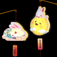 2025新款中秋节灯笼兔子绣球卡通花灯儿童手提发光手工diy材料包