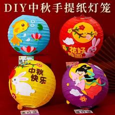中秋节纸灯笼儿童春节手工diy材料包幼儿园圆形手提发光灯笼灯谜