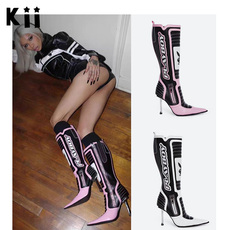 Kii美国正品 Playboy by Dolls Kill 拼色机车风尖头细高跟靴